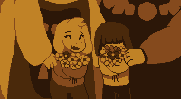 Wenn er Frisk sagt, dass er gehen muss, hat dieser die Möglichkeit, ihn zu trösten, bevor Asriel verschwindet und er Frisk darum bittet, für ihn auf seine Eltern aufzupassen,