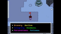 Une fois la balle poussée dans le trou, un drapeau d'une certaine couleur s'élèvera du trou. La couleur de ce drapeau (chaque couleur ayant un lien avec la personnalité de l'un des Huit Humains) offre une description de la manière dont la balle a été maniée, et offre un certain montant de GOLD au protagoniste. Observer le trou avant que la balle n'y ait été poussée entraîne une réaction enthousiaste : "Ah ! Wow ! Woah ! It's a "Hole"." (Ah ! Wow ! Woah ! C'est un "trou"), mais en Génocide, la description sera simplement "It's just a hole" (C'est juste un trou).