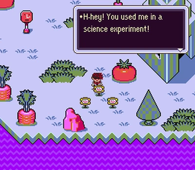 - Le personnage de Flowey pourrait être inspiré des fleurs dans EarthBound, que Toby a inclus dans l'un de ses hacks.