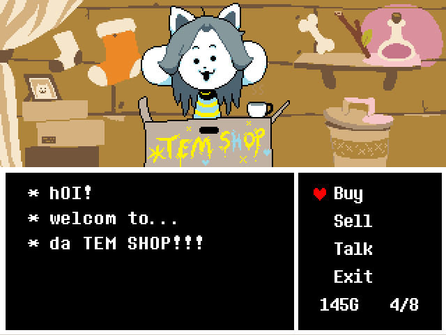 "Tem Shop" est la 44ème musique de la Bande son d'Undertale et se joue dans le Boutik Tem. Elle partage la même mélodie avec Dogsong et "Enemy Approaching". Lors de la route génocide, la vitesse de la musique est divisé par deux.