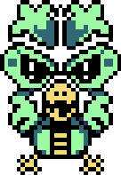 Jego pióra są koloru jasnozielonego, a dziób, oczy, podbrzusze i stopy żółtego. Nosi również czarne, przeciwsłoneczne okulary, aby podkreślić swój "chłodny" i "modny" styl.