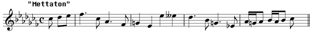 Główny motyw Mettatona. Jest wyraźnie słyszalny w czterech/pięciu utworach i w co najmniej jednym innym pliku muzycznym.[21]