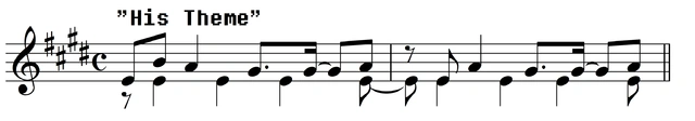 Ten leitmotif pojawia się w co najmniej sześciu utworach, a także w minimalnie jednym innym pliku dźwiękowym gry.[6]