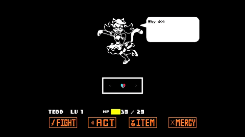 DUSZA protagonisty dzieli się na połowę, odpowiednio kontrolowaną przez obie strony kontrolera. Każda połowa duszy może poruszać się indywidualnie. Jej połówki są ograniczone do trzech pozycji wewnątrz planszy, ściśle przypominając walkę z Muffet.
