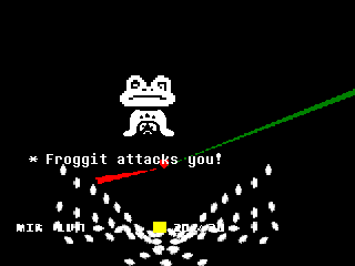Sala 267, também conhecida como room2, mostra três sprites de Froggits antes de deixar a tela vermelha e tocar o som de inimigo derrotado bem alto. Depois de um tempo, o jogo crasha.