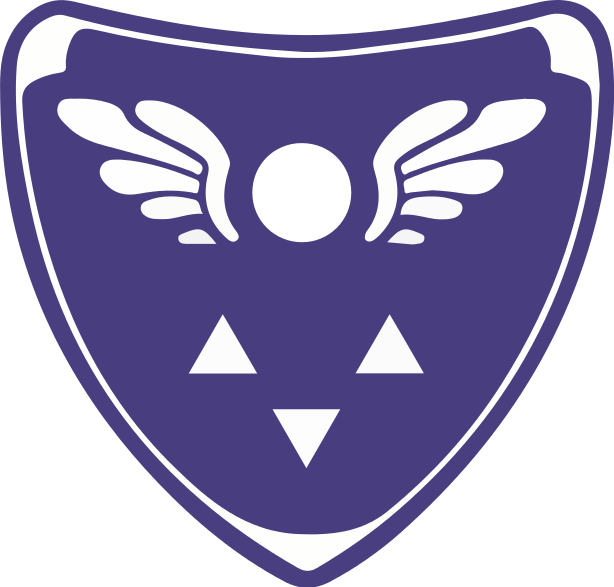 Представляет из себя фиолетовый треугольный щит, углы которого слегка скруглены, а глава вогнута посередине вниз, имеющий белую кайму, утолщающуюся в углах, в почётном месте которого расположен вместе с узорами крыльев круг, под которым в середине щита находятся три равносторонних треугольника, из которых двое направлены вершиной вверх, а один — средний — вниз.