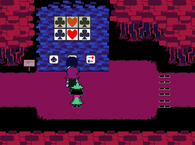 В этой комнате впервые встречается что-то, действительно похожее на головоломку. Табличка с паролем отвандализирована Рулсом Каардом, и масти не разобрать, только цвета. В разных частях комнаты находятся норы, из которых будут вылезать различные головы Кловер. Они не смогут сказать весь пароль, однако каждая из них сообщит факты о нём, сопоставив которые можно легко решить головоломку. После решения головоломки, Кловер, однако, не захочет отпускать героев и, на выходе из комнаты, вступит с ними в бой.