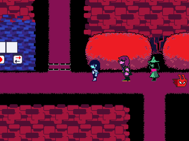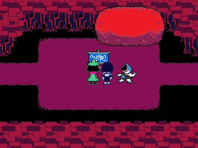 В начале этой комнаты Лансер и Сьюзи представляют Крису и Ральзею название своей новоиспечённой команды, а также свои злодейские псевдонимы. Они заявляют, что собираются разгромить героев. Ральзей спрашивает о их злобном плане, на что они отвечают, что он уже в разработке, и героям не придётся долго ждать. В северо-восточной части комнаты стоит рудинн, который не нападает, так как у него перерыв. С западной стороны из кустов выскакивают два рэббика. На выходе из комнаты у пня расположились Сьюзи и Лансер, которые решили перекусить сальсой из щели пня. Они могут угостить ей и героев, что, однако, не восстановит ОЗ.