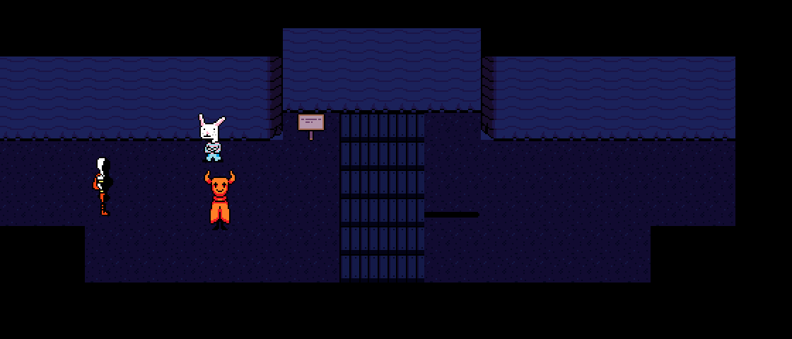 Комната 274, также известная как room_overworld, является чёрной комнатой с NPC, выглядящие как плохо нарисованные флажки с лицами, похожими на выражение лица протагониста. Эти спрайты в файлах игры называются spr_test_dt_0. Если попытаться поговорить с этими NPC, игра вылетит. В этой комнате есть только два диалога, которые могут быть вызваны. Первый диалог — это диалог с Ториэль, ничем не отличающийся от первого диалога с ней. Отличие только в том, что слово «ТОРИЭЛЬ» синего цвета, и «РУИНЫ» — красного цвета.
