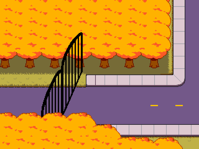 К западу от полицейского участка находится дорога, перекрытая полицейской лентой с надписью «НГАХХХХХ!!!». В главе 2 Альфис можно встретить на этой дороге со сломанным из-за аварии с Андайн велосипедом.