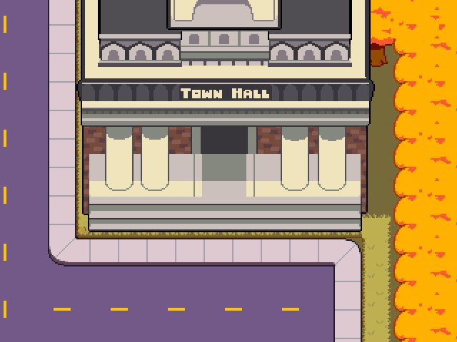 Мэрия находится к востоку от центральной дороги. После школы в приёмной мэрии можно встретить медведя-политика и парня с портфелем. Рука-рецепционист не позволяет Крису встретиться с мэром, чей кабинет находится где-то в здании. Приёмная мэрии украшена сосной и картой города. В главе 2 здесь также находится фиолетовый парень.