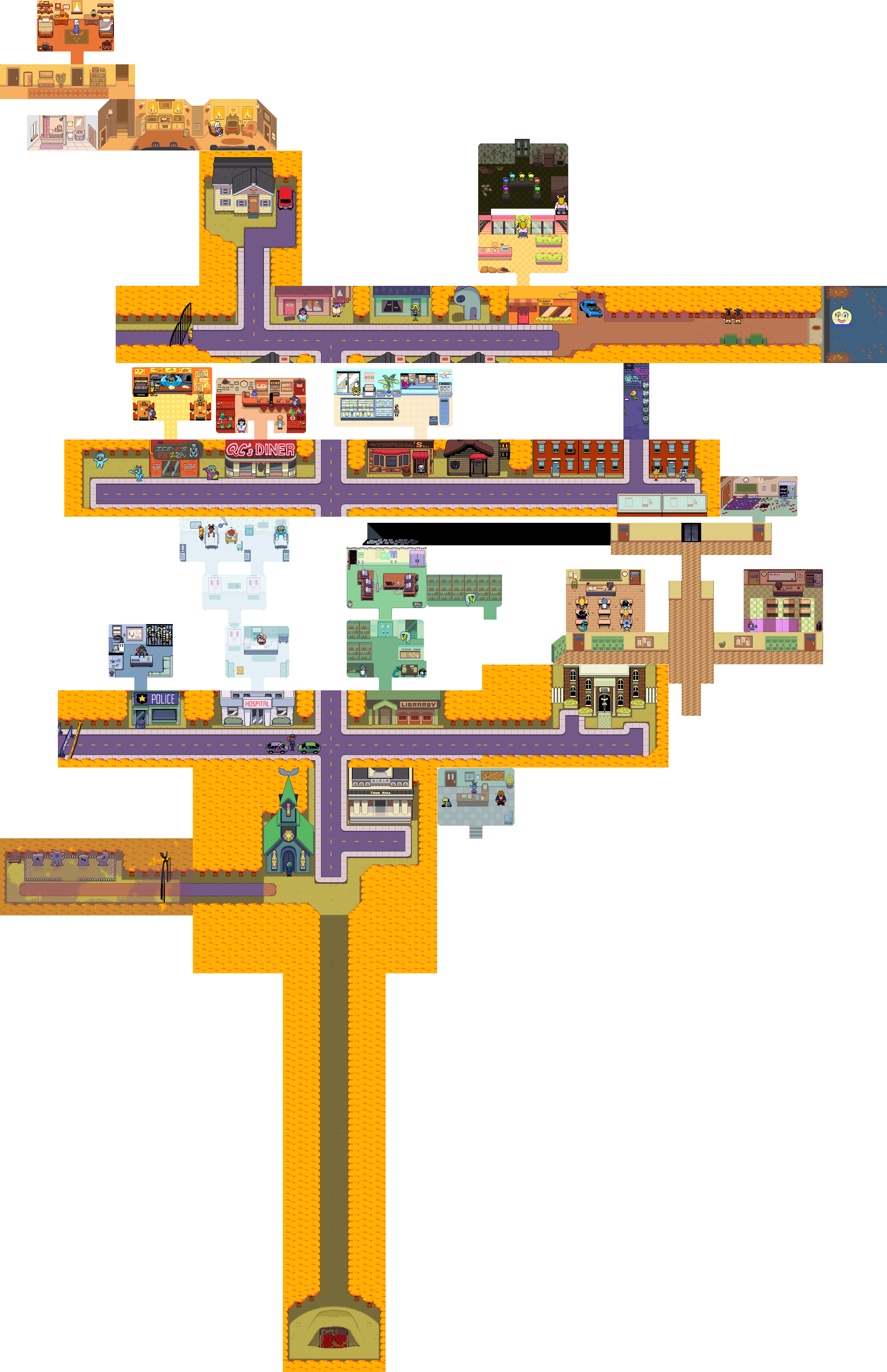 | Родной город | Дом Дримурров ♥ Школа ♥ Библиотека ♥ Больница ♥ Закусочная QC ♥ Цветочный король Убежище ♥ Церковь ♥ Дом Ноэлль |