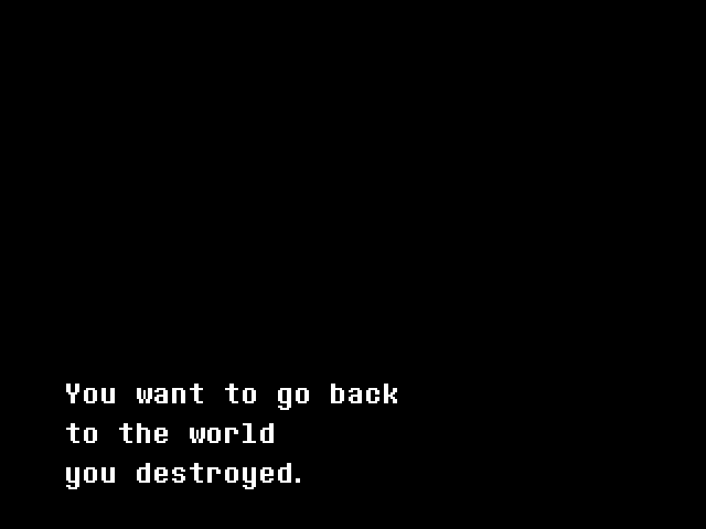 Chara reminds the player that they destroyed the world and then questions if the player thinks they are above consequences.[13]