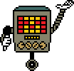 Mettaton originally appears as a gray, largely rectangular box with a 4x5 grid of rectangular lights at the top, similar to the mechanism in Snowdin Forest used for Papyrus's Tile Puzzle. The grid of lights can change colors between red, yellow, green, and blue, and Mettaton uses these color changes in place of facial expressions. He has four dials along the bottom of his body, and the bottom, he has a single leg which ends in a wheel. He has two segmented robotic arms which end in white gloves.