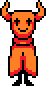 They are an opposite to the Scarf Mouse, being knowledgeable about the bad parts of the Underground, but focusing on the positives. They do this because they claim that nothing can be done about it, so there is no point in being morose. When spoken to a second time, their dialogue reads "Smile, smile" (possibly in reference to Earthbound, in which some shopkeepers say "Smile, smile" at the ends of their sentences.) If the protagonist kills Papyrus, they mention that they felt their smile falter for a moment.[3] When the protagonist talks to them after completing the True Pacifist route, they mention how they are glad that they do not have to pretend to be happy anymore. Their sprite is referred to as "Red Demon." It is explained in the Undertale Art Book that there were plans for a "Blue Demon" and an Amalgamate version, but were forgotten by Toby Fox.[5]