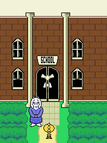 Toriel standing outside the school.