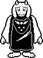 If the protagonist kills her during a Neutral Route, she uses the last of her strength to give them a warning about what lies ahead and calls the protagonist "my child" before she turns to dust.[18] If the protagonist kills her when she stops attacking, she says that the protagonist is no different from the monsters outside the Ruins and laughs hysterically before she dies.[19] In the Genocide Route, she realizes that by keeping the protagonist in the Ruins, she was protecting not the protagonist, but the rest of the monsters in the Underground.[20] The death sprite for Toriel is the same in a Genocide Route and on a Neutral Route if the protagonist kills her after she is spared thirteen times.