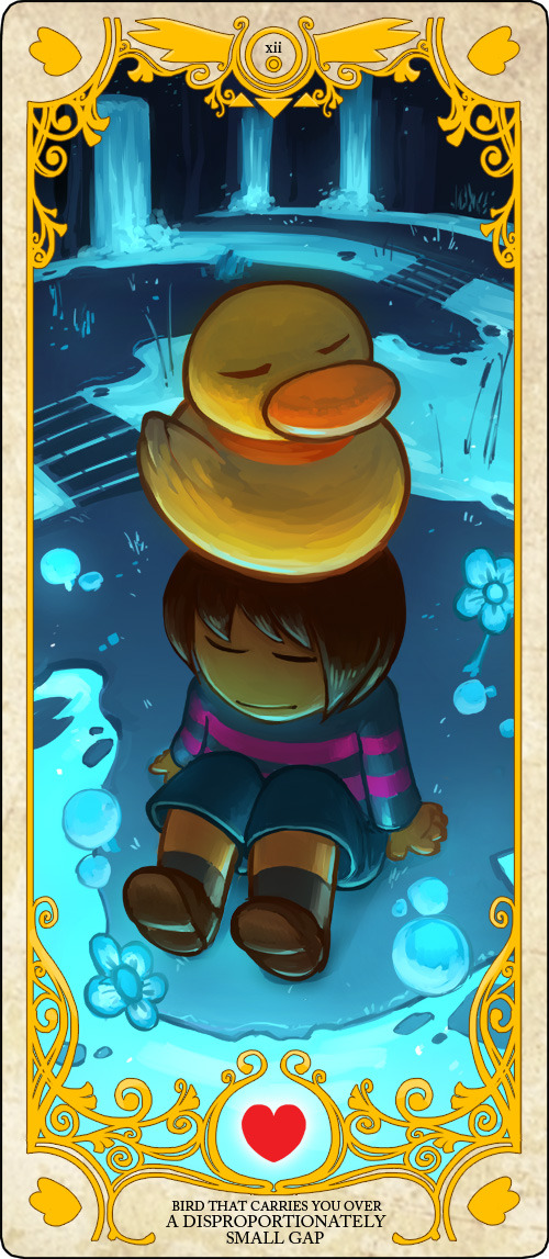 This tiny but determined bird offers to carry the protagonist from one side of the room to the other. Its own special song plays when it does so. According to Undyne, the bird will carry anyone across the gap if they wish and will never say no, and that it once gave her a lift across the gap, and, despite it taking an hour, it never thought of giving up, and that the bird should be cherished.