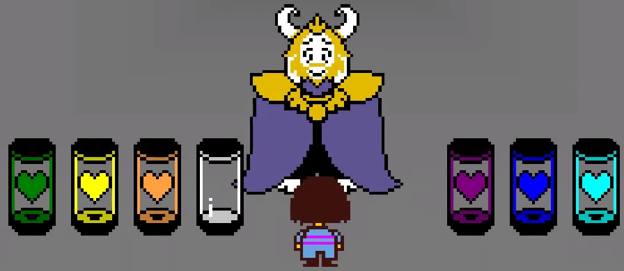 中立路線最後,Asgore揭示了他擁有的六個靈魂。但這些靈魂最後都被Flowey吸收並讓他變成Photoshop Flowey。