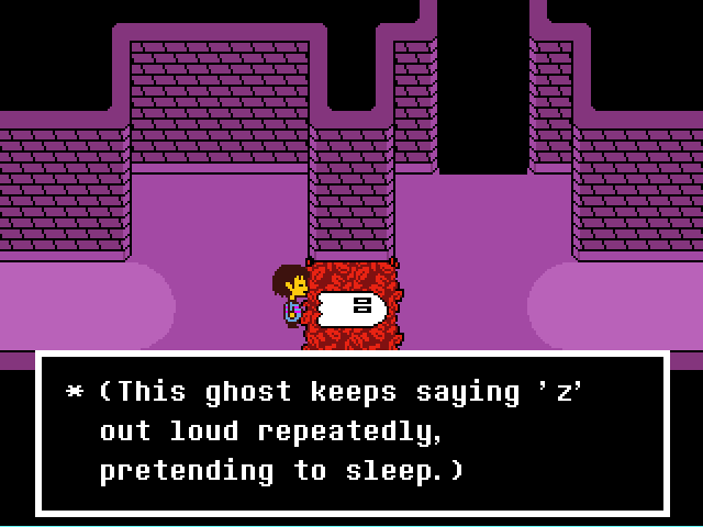 在下個房間,右邊的通道通往兩條岔路:一條往上、一條往右。兩條路都被Napstablook擋住了。選擇用力移開時會觸發戰鬥。Napstablook會在戰鬥後消失,主角便能繼續前進。如果在遭遇Napstablook前達到殺戳數的話,接近時他會自動消失。