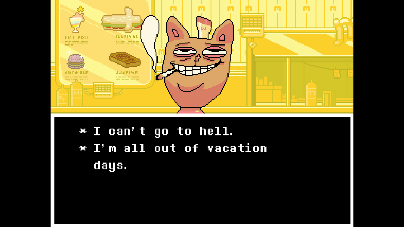漢堡褲(Burgerpants,真名不詳)是熱地的商店NPC,是一位MTT漢堡速食店中的職員。MTT漢堡速食店是一間位於MTT度假村內部的速食餐廳。同時也是Undertale中最後一個遇到的商人。有販售下列物品: