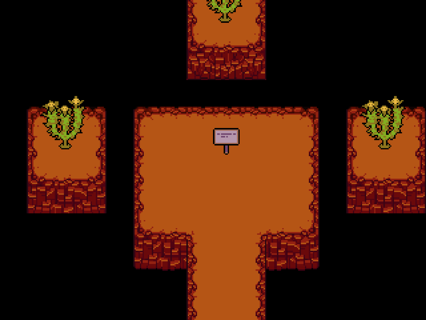主角無法在屠殺路線中不能抵達這個房間,因為熱地第二層被力場封鎖了,若透過修改檔案的方式強制進入,告示牌會顯示"聚會已取消。"。