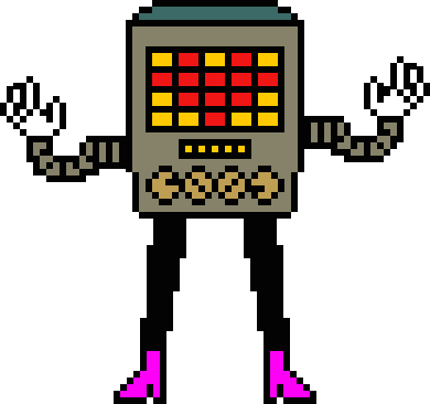 他的胸部是粉紅色的,一側有個儀錶盤,另一側有個音箱。他的金屬腰部裝有他的靈魂(他將其稱為心),機械臂上有兩個黑色的肩甲,手上戴著手套。他的腿是黑色的,底部穿著一雙粉色高跟鞋。