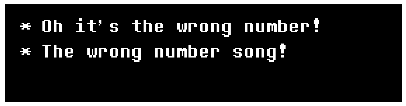 在房間70(room_tundra_dock),雪鎮最北方的地方,主角的手機會隨機接到來電。對方會開始問某位名字開頭為"G"的人,然後來電者會發現他們打錯電話,並開始唱起錯誤號碼之歌。這通電話被猜測是打給Gaster的,但也可能是打給Gerson、Glyde、Gyftrot,或是Grillby。
